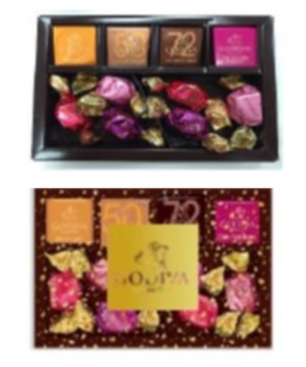 「ゴディバ チョコレートアソートメント」6個入りを1000円、「同ギフトアソートメント」10個入りを1500円、「同カレ アソートメント」4枚入りを500円など5品目を用意してました。