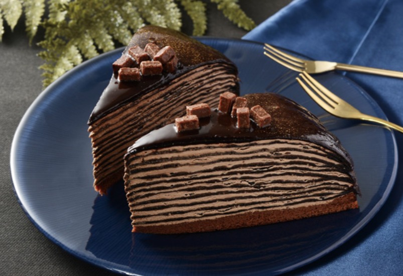 ココアクレープ生地と、ビターに仕立てた生チョコクリームを何層にも重ねたミルクレープです。